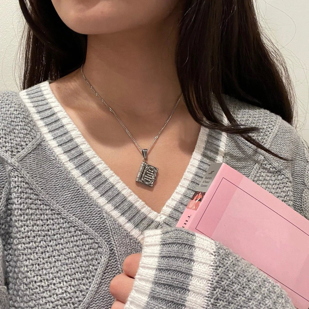 This gilded book locket, etched with delicate detail, opens to hold a hidden treasure—be it a word, a memory, or a whisper of the past. For those who find themselves in stories, it becomes a chapter of their own, resting near the heart.