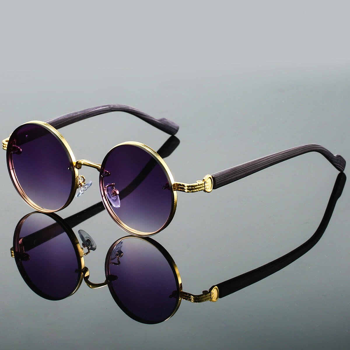 Vintage-Inspired Round Frame Sunglasses with Textured Metallic Accents